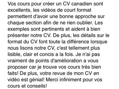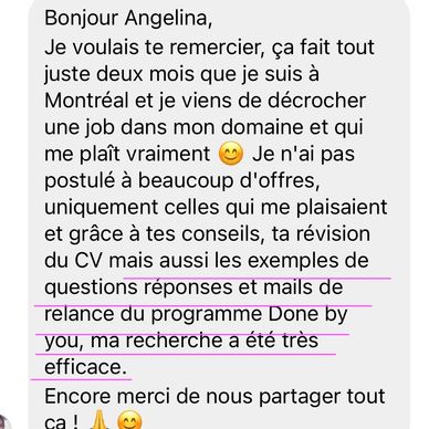 De l'amélioration de leur CV, stratégie de recherche d'emploi à la négociation d'un salaire plus élevé, mon accompagnement les a aidés à atteindre un poste au Canada beaucoup plus rapidement.