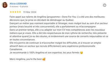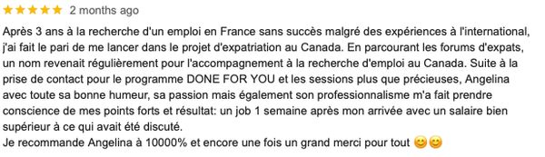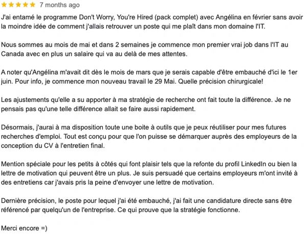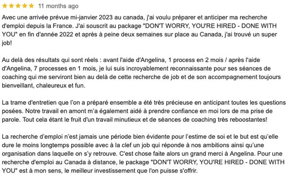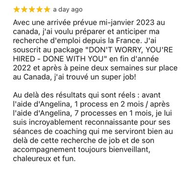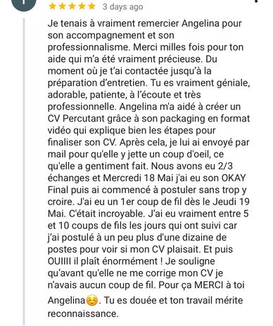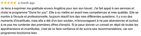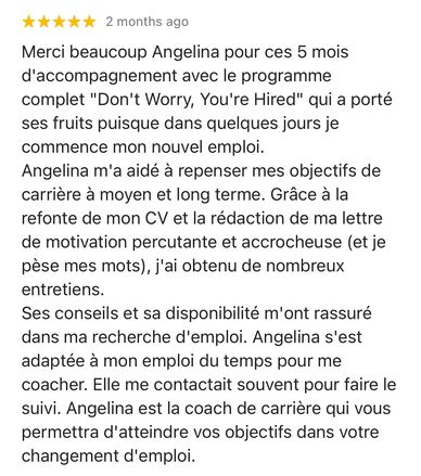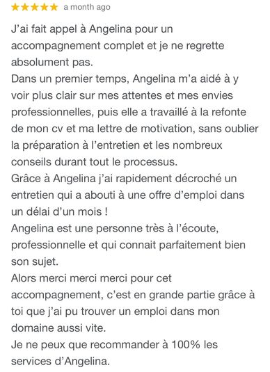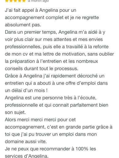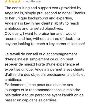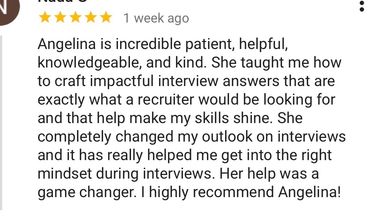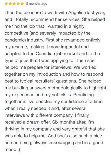 Angelina's skills and expertise helped me secure a great job within three weeks. I would highly recommend getting in touch with her if you're looking to make a switch in your career and want to stand out from the crowd.